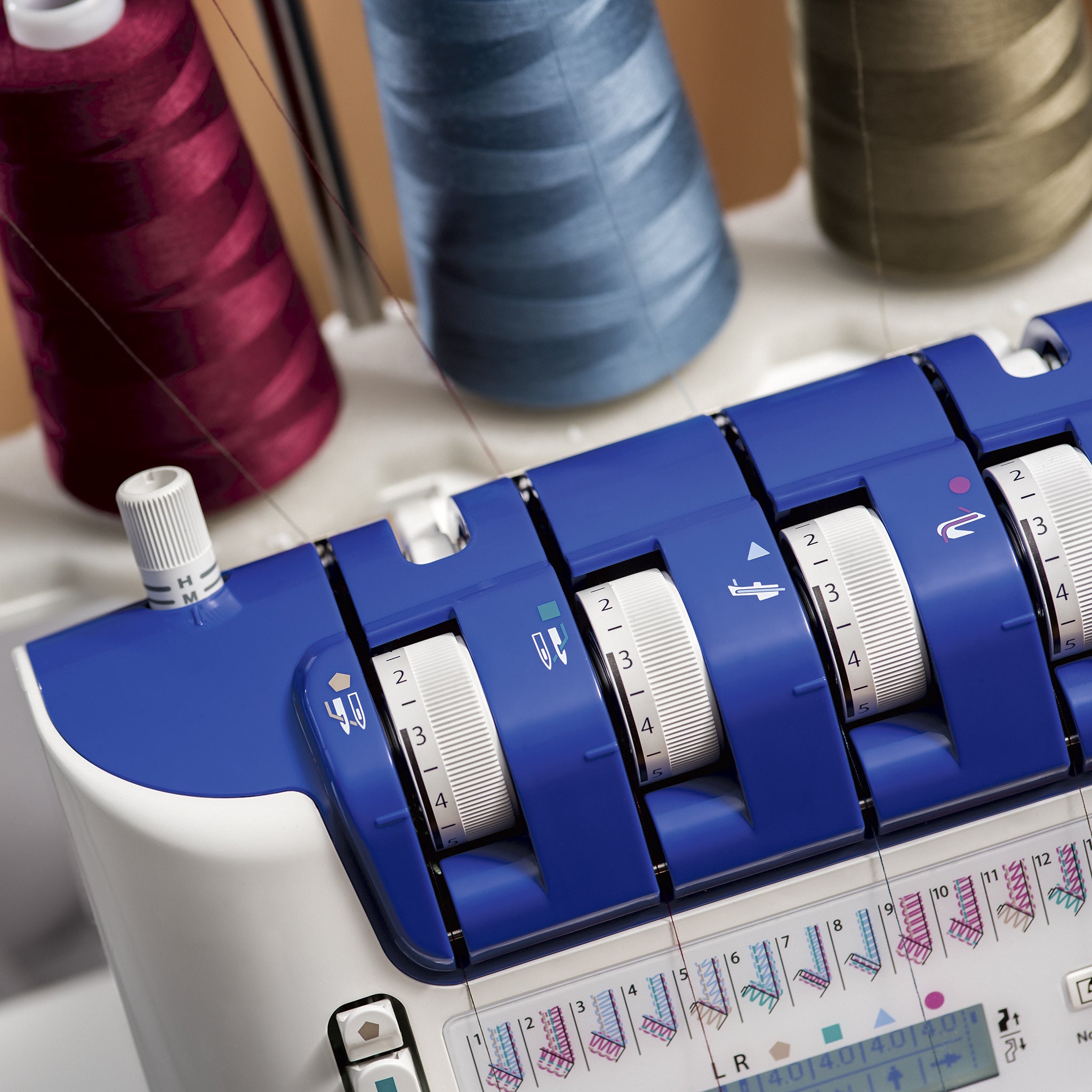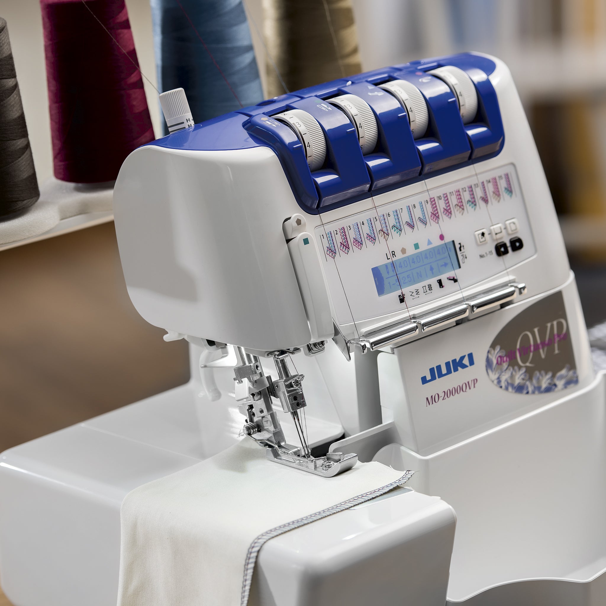 JUKI MO-2000 er en avanceret maskine, der gør det enkelt for dig at opnå præcise syresultater. Den kan sy med 2, 3 og 4 tråde samt 1 til 2 nåle ad gangen og løfte trykfoden fra 5 mm op til hele 8 mm. Du kan nemt tråde undergriberen og præcist justere trådspændingen på både over- og undergriber. Justering af stinglængde, skæreblad og materialtransport er også lettilgængelig på maskinens yderside.