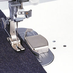 Denne lineal fungerer som en hjælper, når du syr med et fastsat sømrum langs kanten af stoffet. Den indbyggede magnet sikrer, at du nemt kan flytte linealen, og en stærk magnet holder den sikkert på plads på nålepladen. Du kan også bruge denne lineal på en husholdningssymaskine med en metallisk nåleplade.