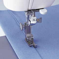 Trykfoden bruges til at stabilisere stingene 1,5 mm til venstre for en tyk søm, hvilket er særligt nyttigt til coversting. Ved at guide stoffet langs trykfodens højre "tå" kan stingene sys 1,5 mm fra den tykke søm. Den fjeder, der bevæger guiden op og ned, gør det muligt at bruge trykfoden til mange forskellige typer stof, lige fra letvægts til tungvægtsmaterialer.