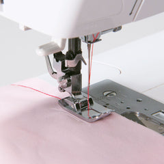 Denne trykfod er beregnet til syning af lige sting med nålen centreret. Hjælpelinjerne foran på højre side af trykfoden hjælper dig med at kontrollere bredden af sømmen. Der er markeret hjælpelinjer ved siden af nålen på 3, 5 og 7 mm, så du nemt kan justere sømmens bredde. Ved at sy gennem en lille rund åbning stabiliseres sømmen, hvilket giver mulighed for at sy perfekte lige stikkesting. Denne trykfod er ideel til præcis syning af lige sømme med ensartet afstand mellem stingene.